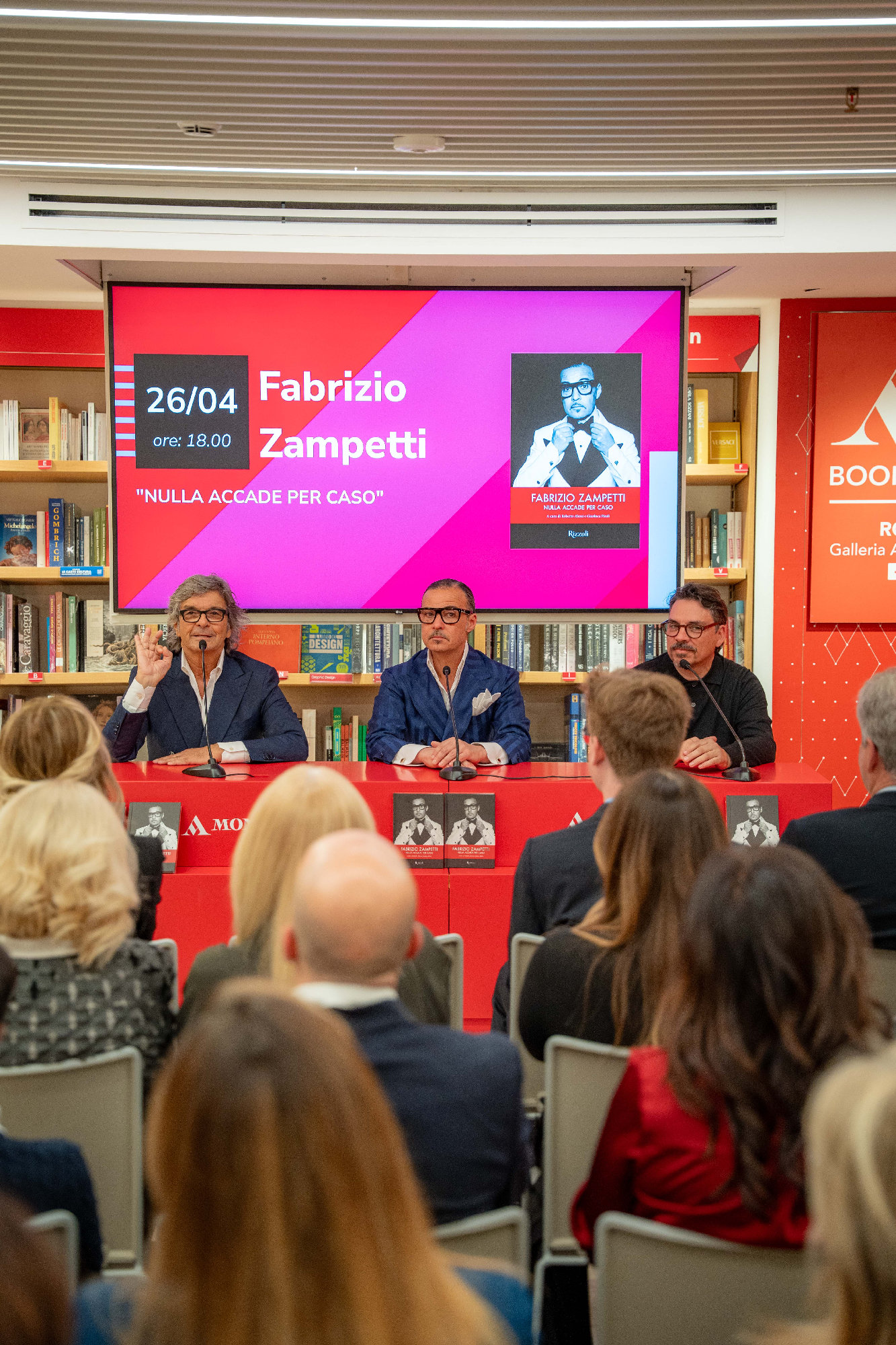 Lo scorso sabato 26 aprile, alla Mondadori Bookstore di Galleria Alberto Sordi a Roma, si è tenuta la presentazione di “Nulla accade per caso”, la prima biografia edita da Rizzoli dedicata a Fabrizio Zampetti, esperto del real estate di lusso, scritta e curata rispettivamente da Roberto Alessi, uno dei grandi nomi del giornalismo italiano, direttore di importanti testate e con una brillante carriera tra radio, tv e carta stampata, e da Gianluca Piroli, Creative Director originario di Parma, laureato in Scienze Politiche che, fin da giovane, ha collaborato con brand di rilievo come Fiorucci, Levi's, Ferré, Wrangler e Vans, è stato direttore creativo per tutto il materiale di comunicazione di Replay e, contemporaneamente, ha fondato Acme, lavorando con aziende italiane e internazionali e collaborando con fotografi di fama come Helmut Newton, Ferdinando Scianna, Sheila Rock e molti altri.