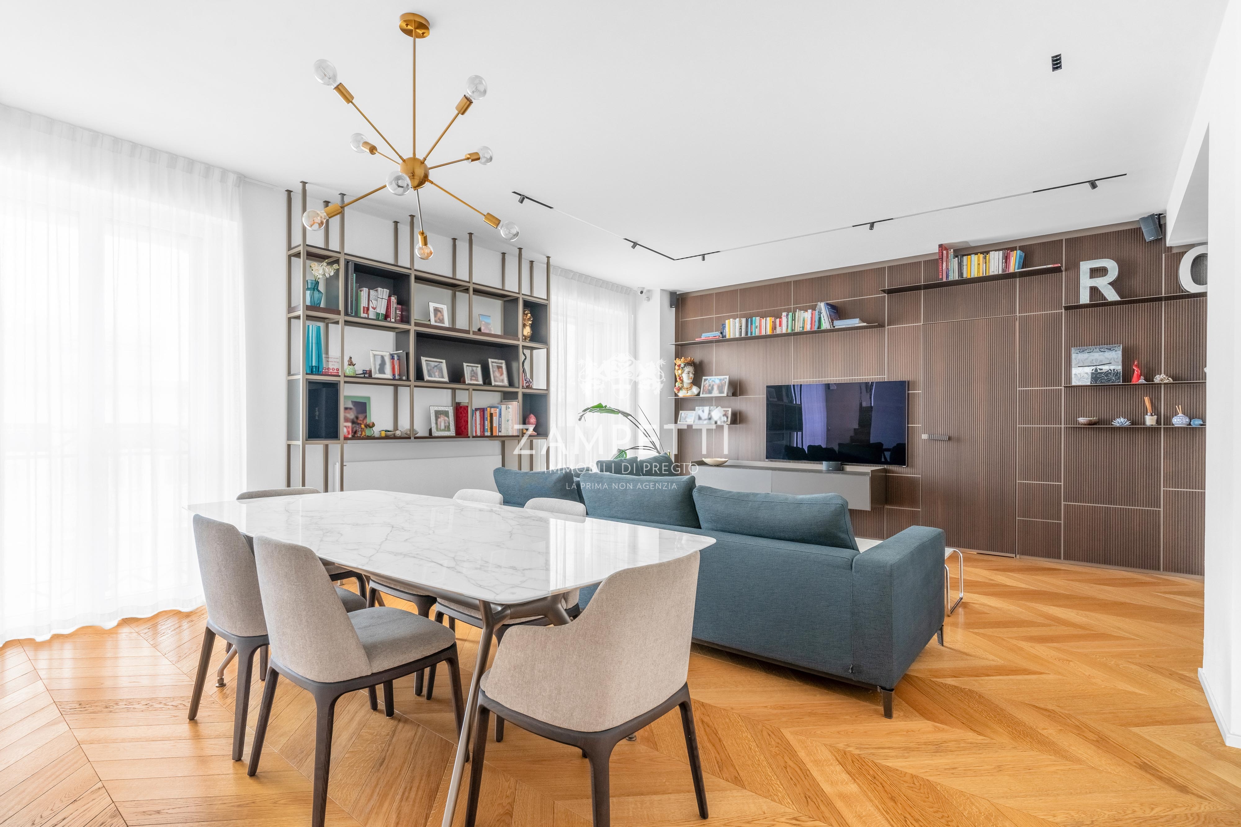 La Zampetti Immobili di Pregio propone in vendita in esclusiva un moderno attico di circa 196 mq, disposto su due livelli e situato al quarto e quinto piano di un elegante contesto condominiale, dotato di ascensore, servizio di portineria oltre a un curato cortile interno.