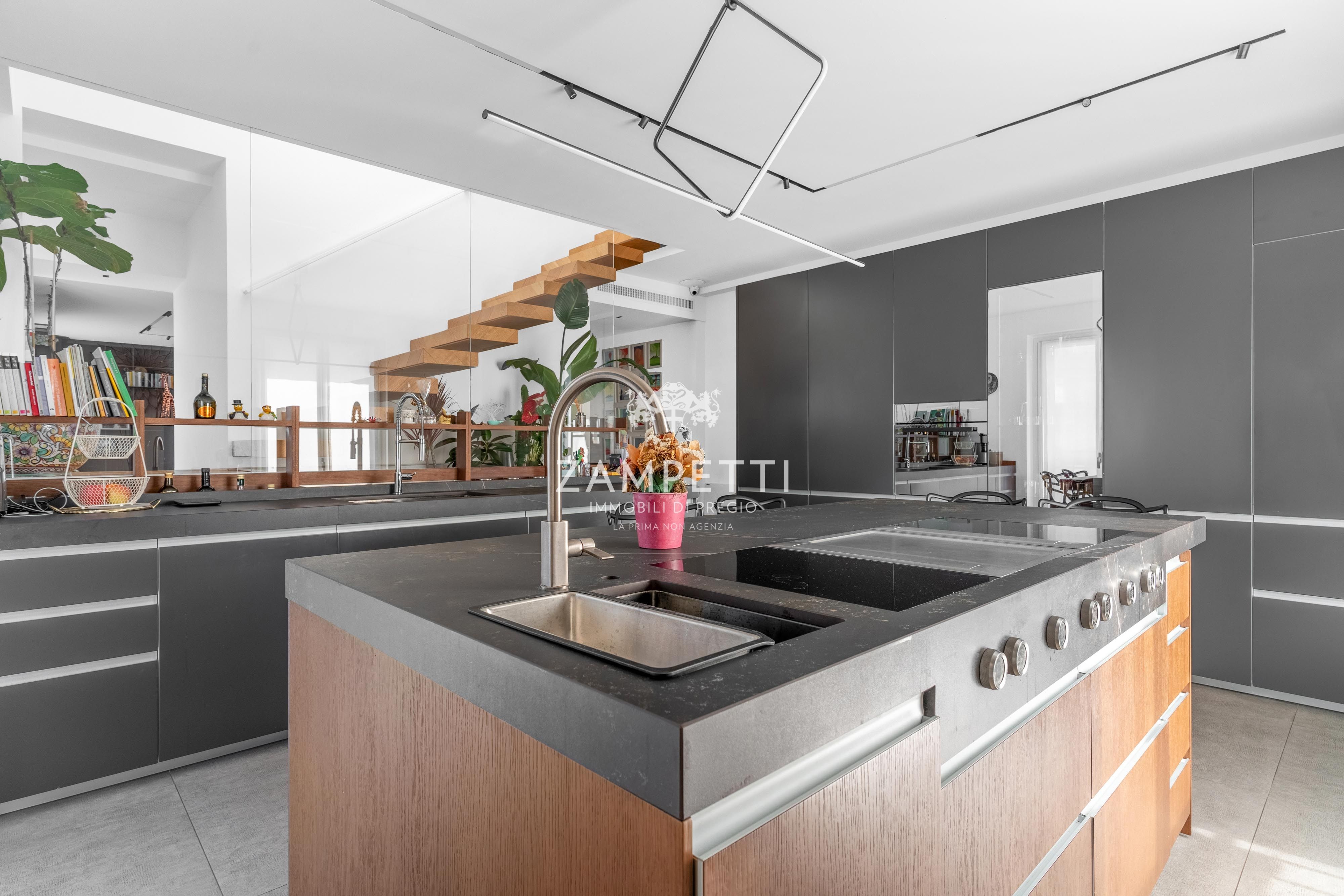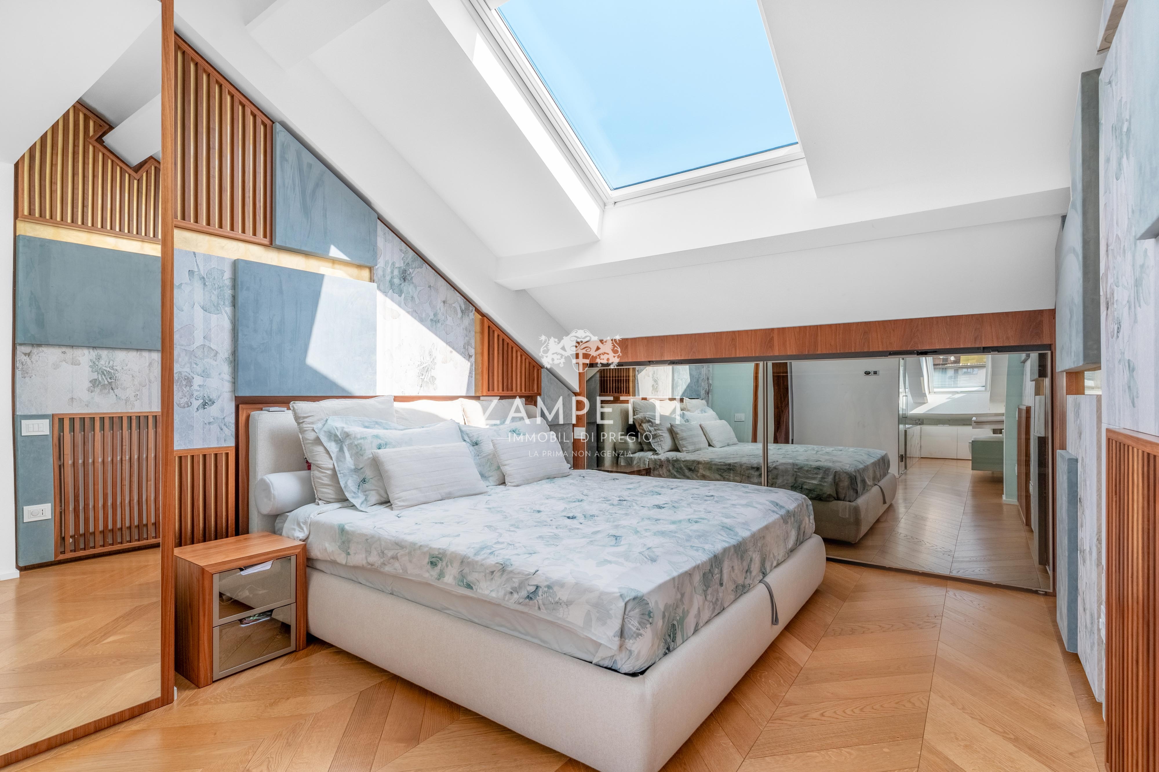 L’immobile è valorizzato da grandi finestre Velux che donano una straordinaria luminosità agli ambienti e da eleganti pavimenti in parquet a spina di pesce, che conferiscono profondità e raffinatezza agli spazi. Completano la proprietà una cantina.
