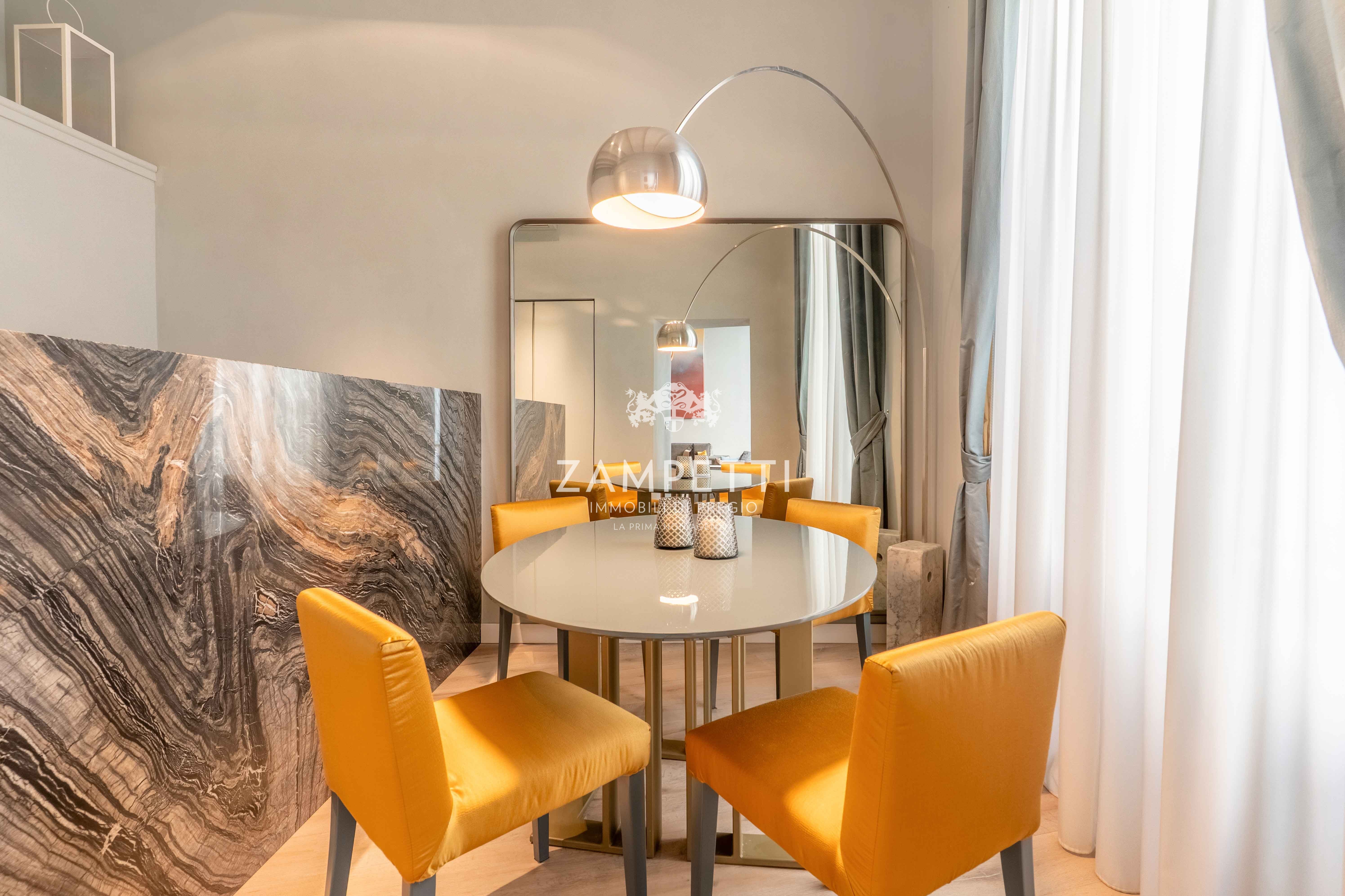 Questo immobile incanta con le sue travi a vista e una ristrutturazione che combina gusto, eleganza e materiali di alta qualità. L'ingresso si apre su un ampio salone di rappresentanza, ideale per accogliere ospiti, mentre la cucina, dotata di una raffinata zona pranzo, è impreziosita da eleganti superfici in marmo Antolini.