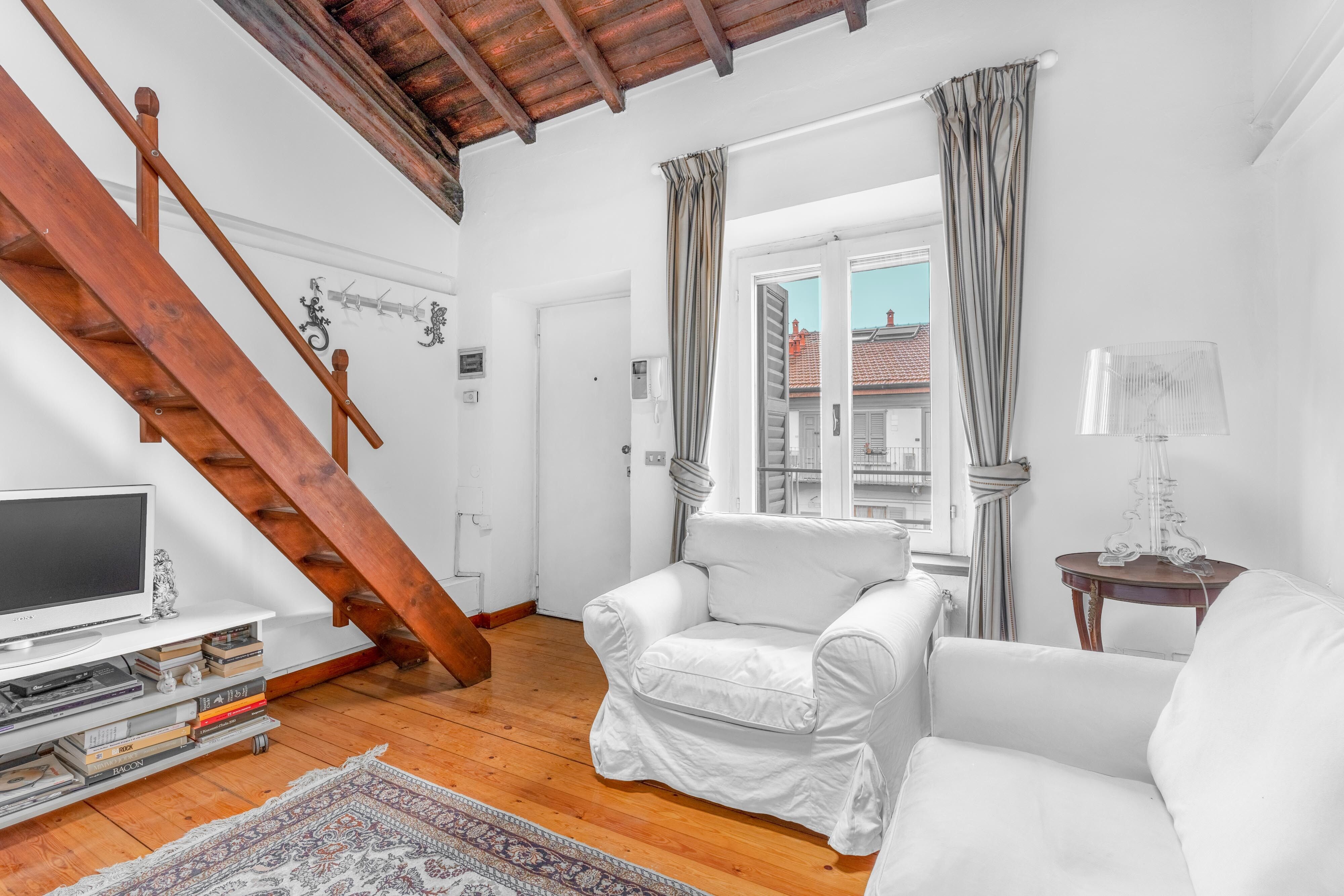 La silenziosa residenza affacciata sui cortili interni, gode di grande luminosità, di circa 95 mq è composta al suo interno al primo livello da ingresso, un soggiorno con piccola cucina abitabile, camera matrimoniale e bagno; al secondo livello, raggiungibile da una deliziosa scala interna, troviamo una seconda camera/studio e lavanderia.