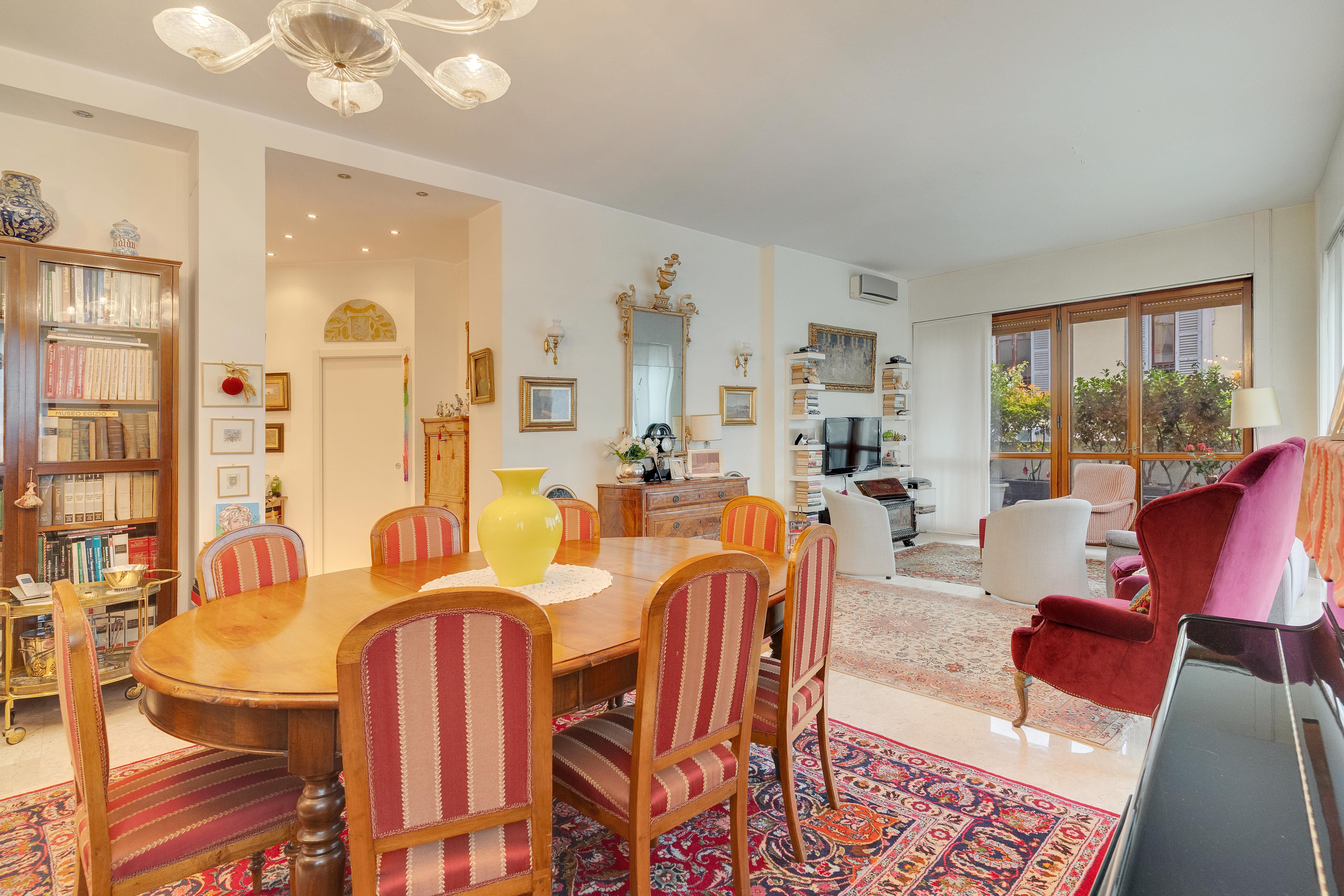 La proprietà, luminosa e silenziosa, si sviluppa su una superficie di circa 270 mq e gode di doppi ingressi, offrendo così una flessibilità ideale anche per eventuali esigenze di rappresentanza o suddivisione degli spazi.