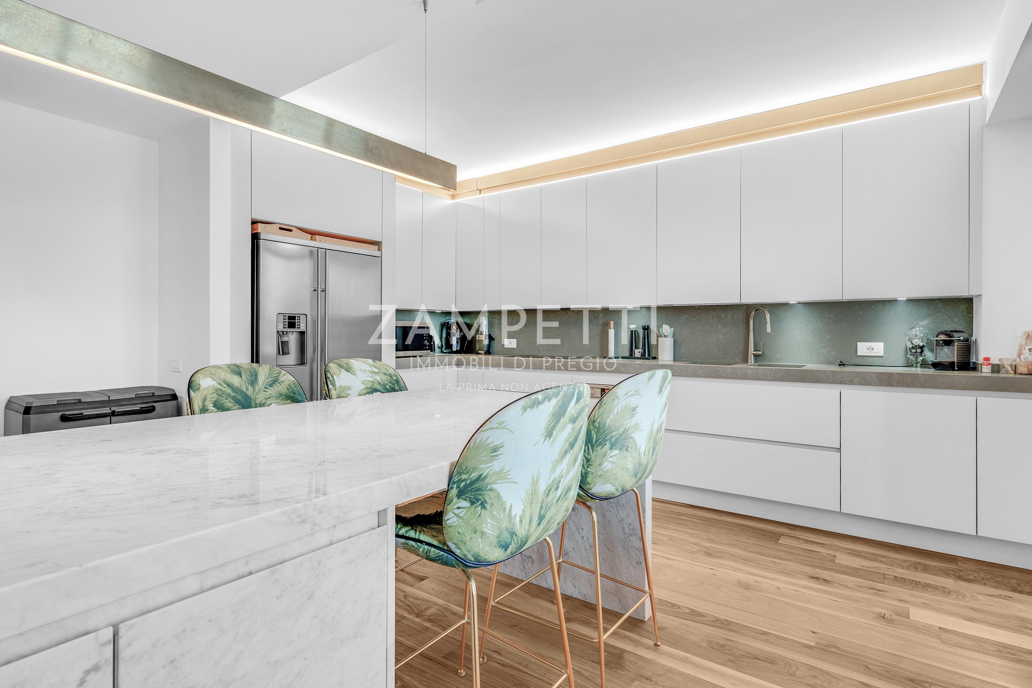 il prestigioso studio Zampetti Immobili di Pregio è lieto di presentare in vendita in esclusiva una splendida residenza di nuova costruzione, con una superficie di circa 222 mq, situata al sesto piano di un moderno edificio dotato di ascensore e servizio di portineria a tempo pieno.
