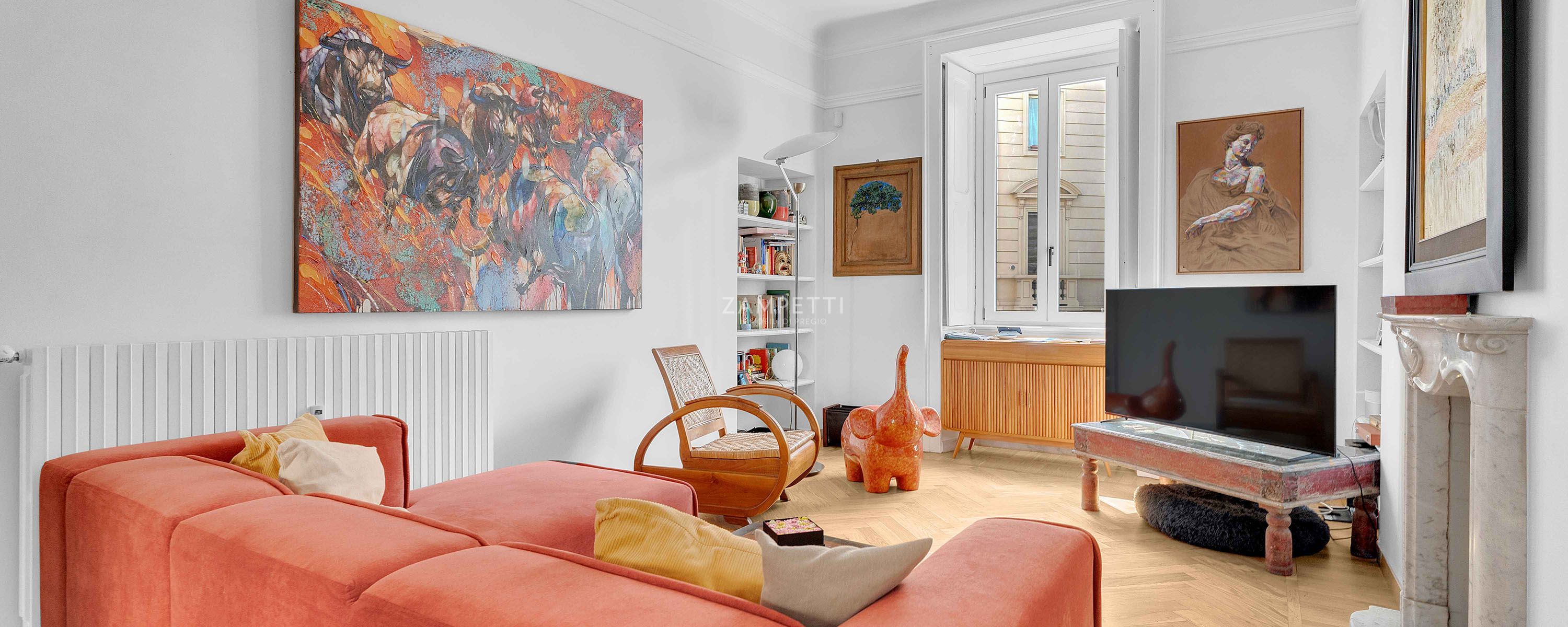 la Zampetti Immobili di Pregio propone in esclusiva un'elegante residenza di circa 150 mq situata al secondo piano di un prestigioso palazzo d’epoca, dotato di ascensore e servizio di portineria.