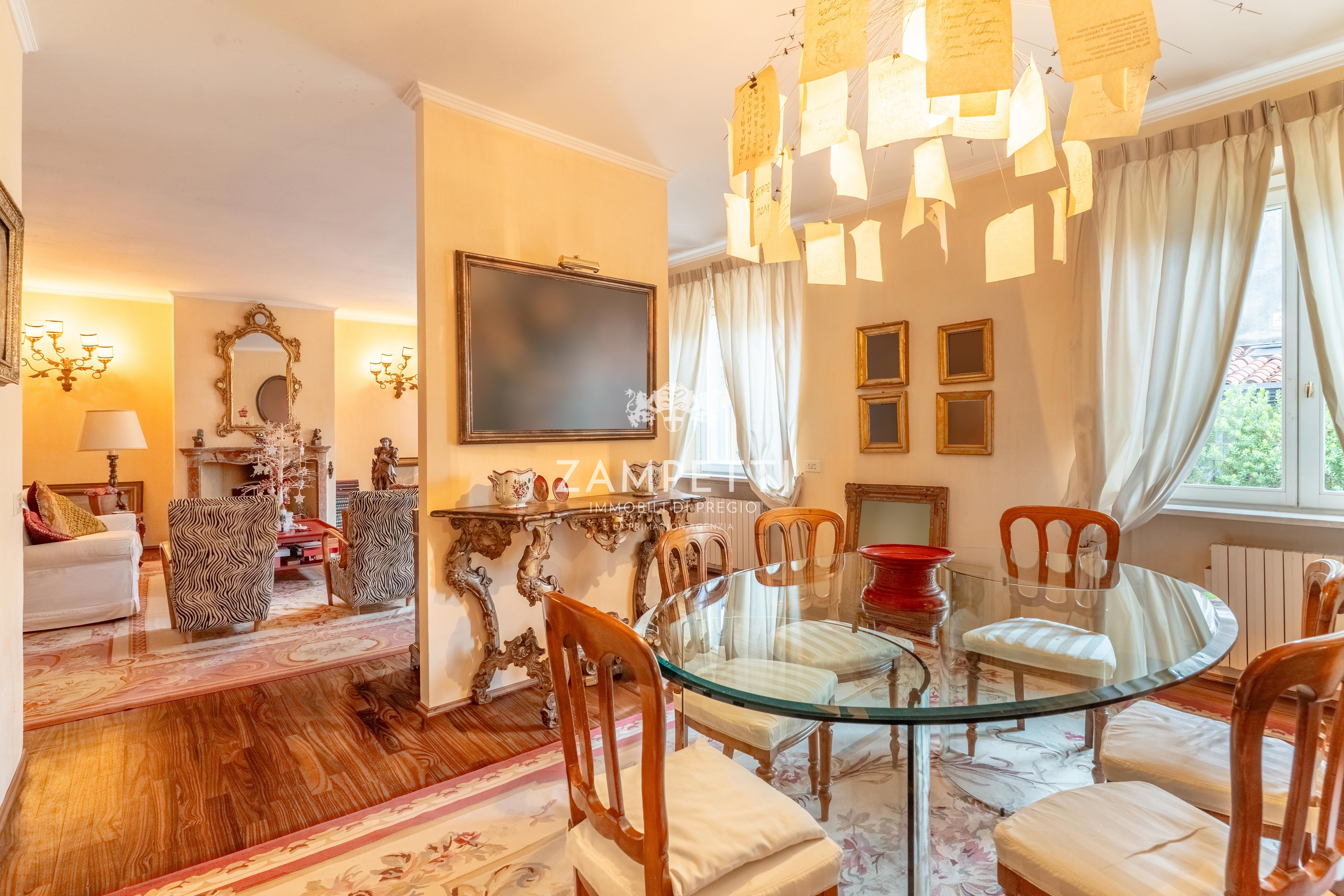 Adiacente si trova la sala da pranzo, ambiente ideale per ricevere con stile, e una cucina abitabile funzionale e ben organizzata. Completano il piano un bagno e una camera/stanza di servizio.