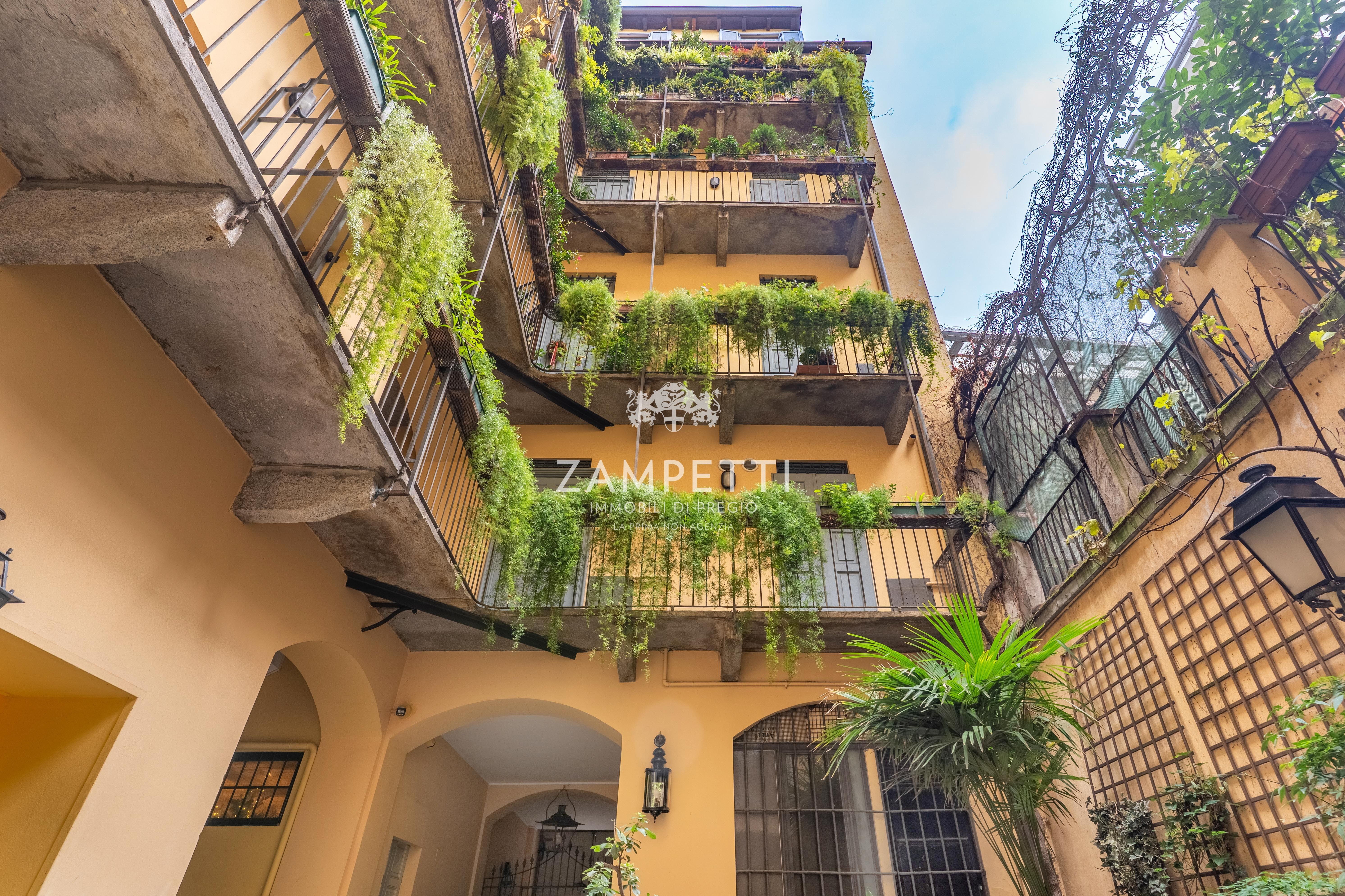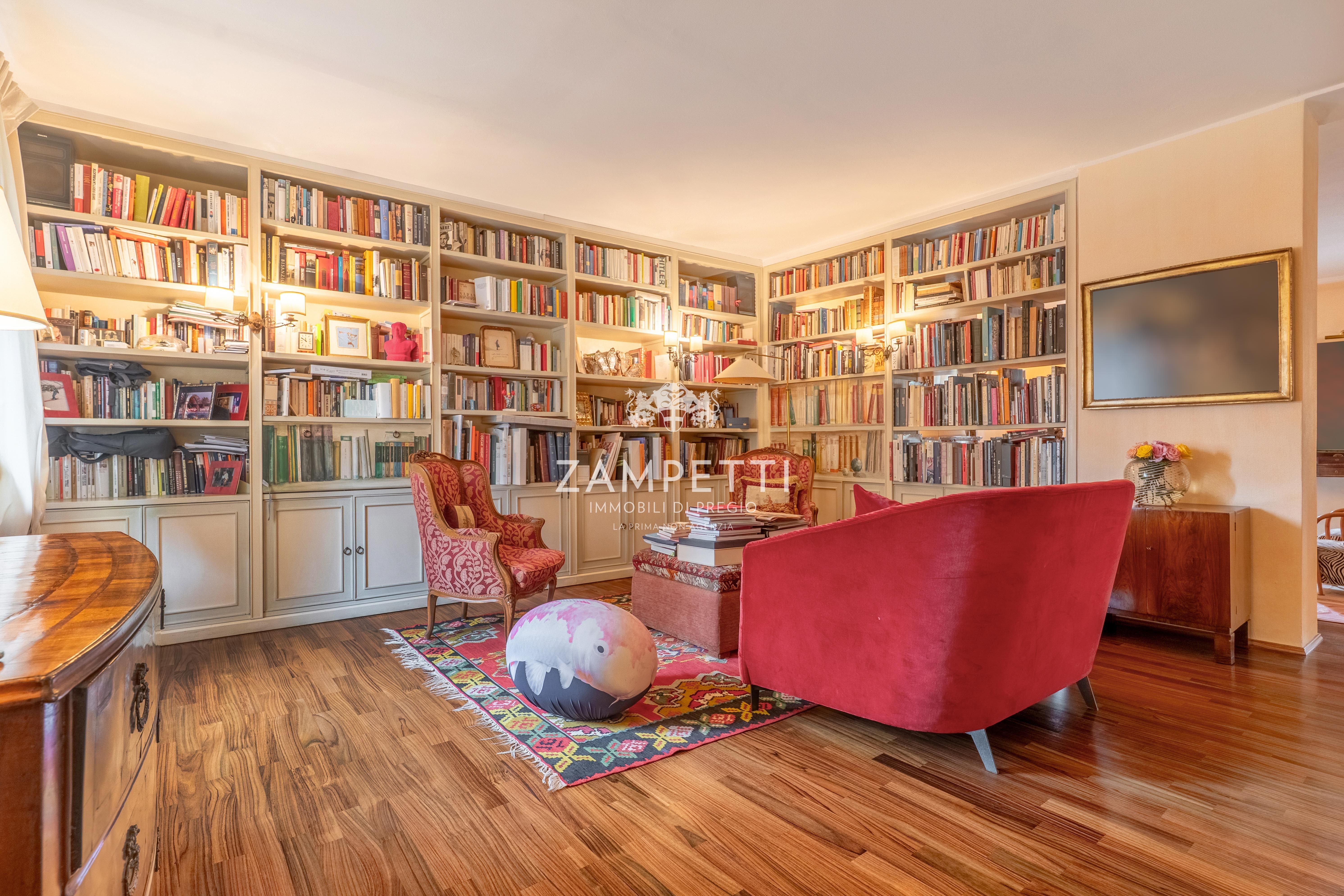 la Zampetti Immobili di Pregio propone un attico di assoluto prestigio, disposto su due livelli, al quarto e quinto piano di un affascinante palazzo d’epoca di fine ’800, con ascensore e servizio di portineria mezza giornata.