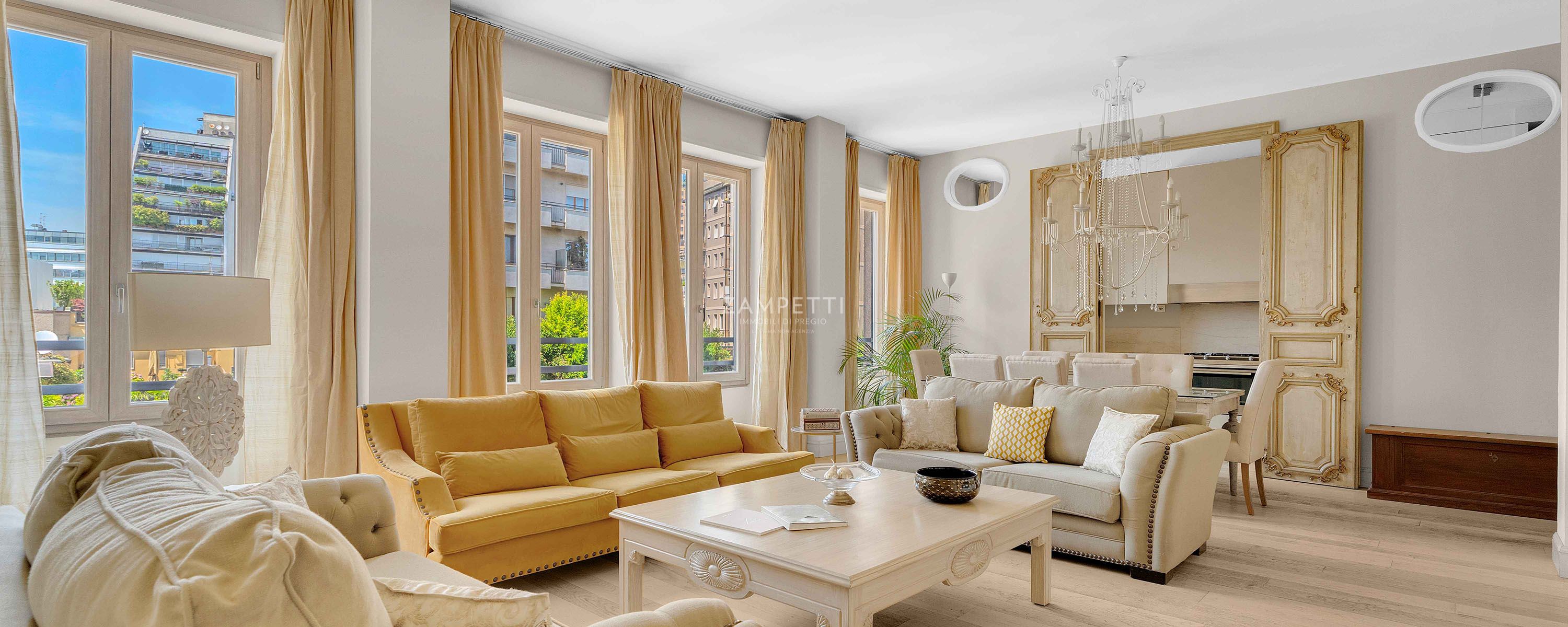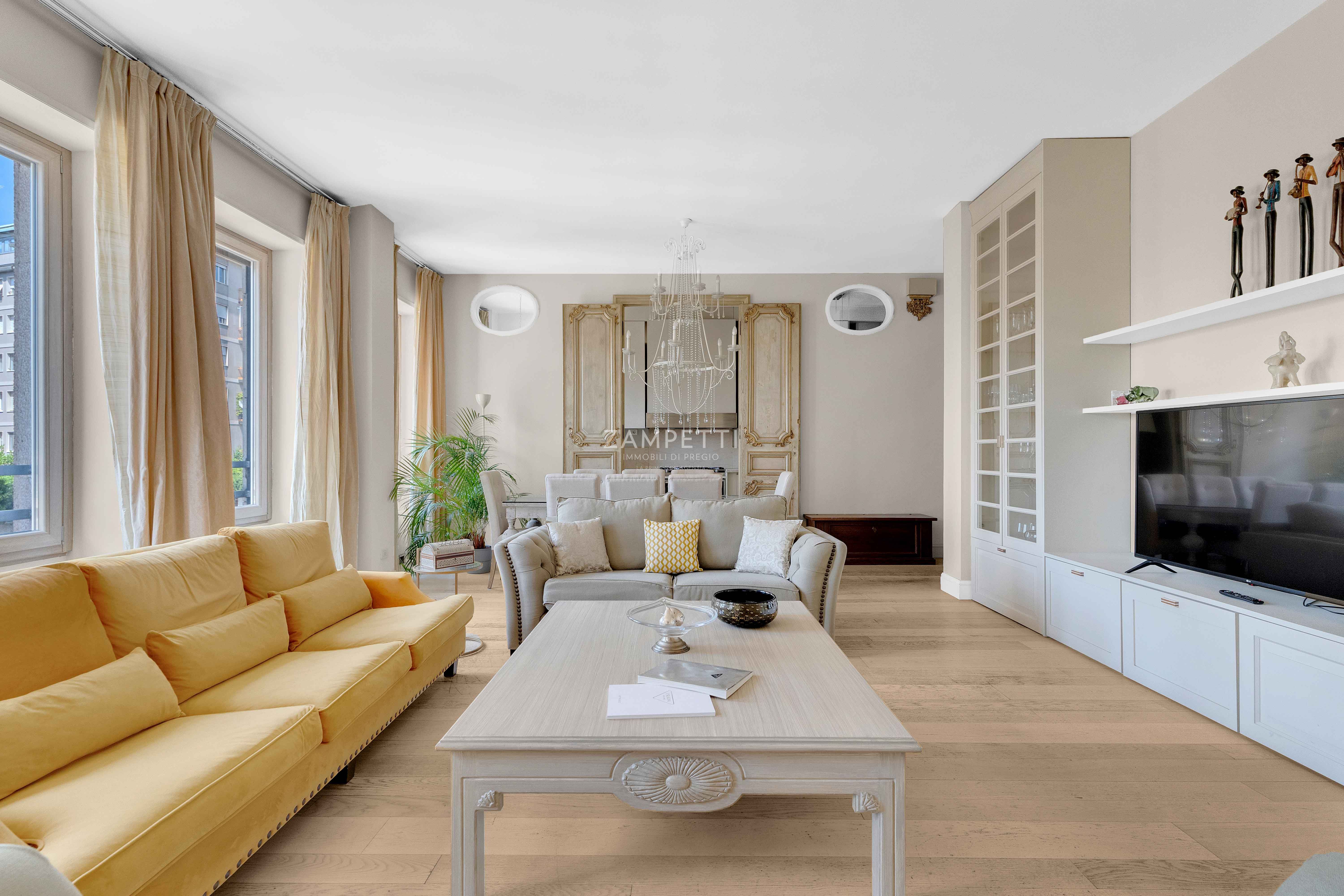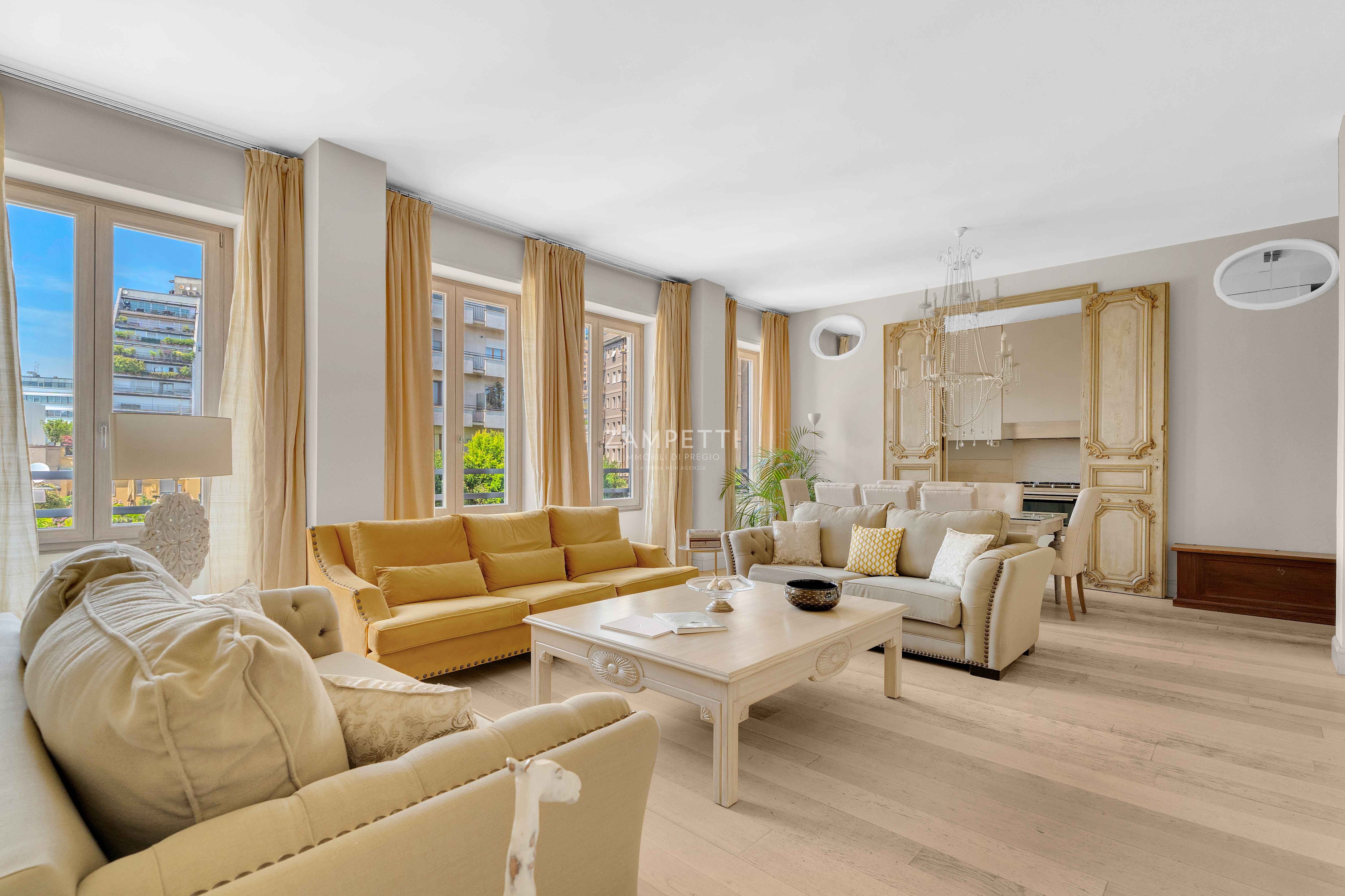 Nella rinomata zona di Corso Italia, a due passi da Corso di Porta Romana e dal centro cittadino, la Zampetti Immobili di Pregio propone in esclusiva un'elegante residenza situata al quarto piano di uno stabile signorile con doppio ascensore e servizio di portineria tutto il giorno.