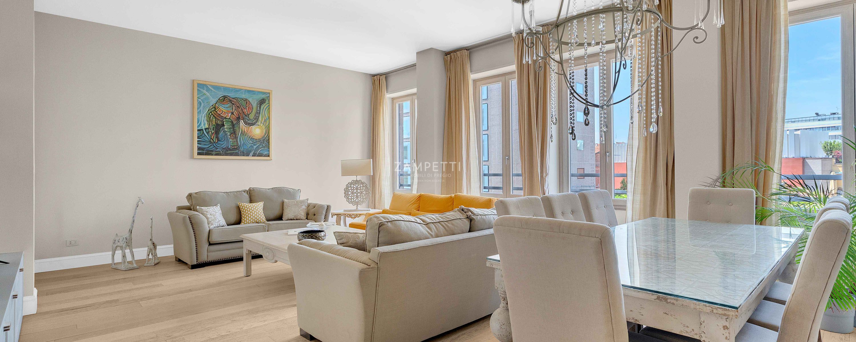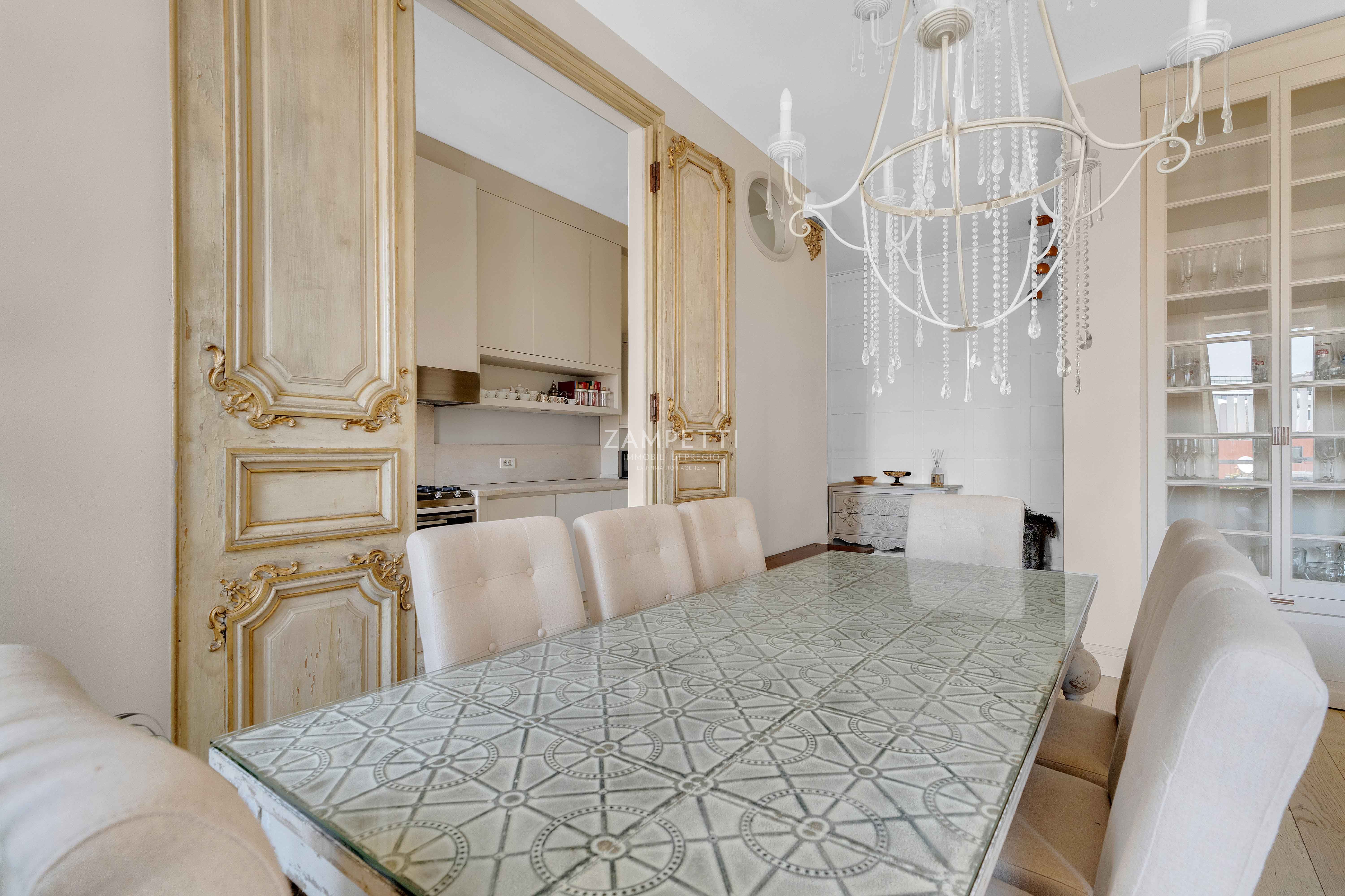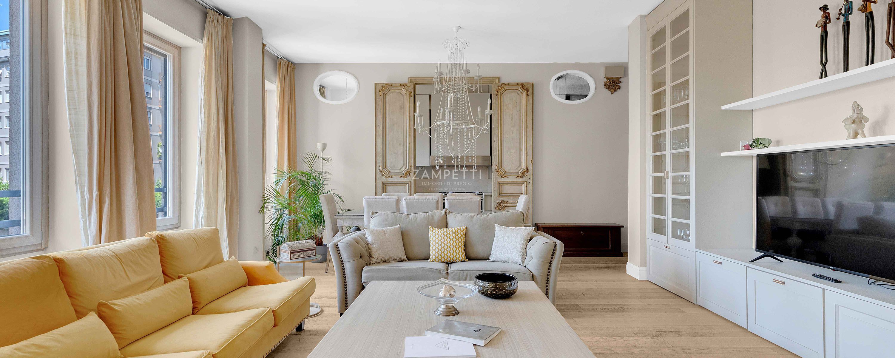 Nella rinomata zona di Corso Italia, a due passi da Corso di Porta Romana e dal centro cittadino, la Zampetti Immobili di Pregio propone in esclusiva un'elegante residenza situata al quarto piano di uno stabile signorile con doppio ascensore e servizio di portineria tutto il giorno.
