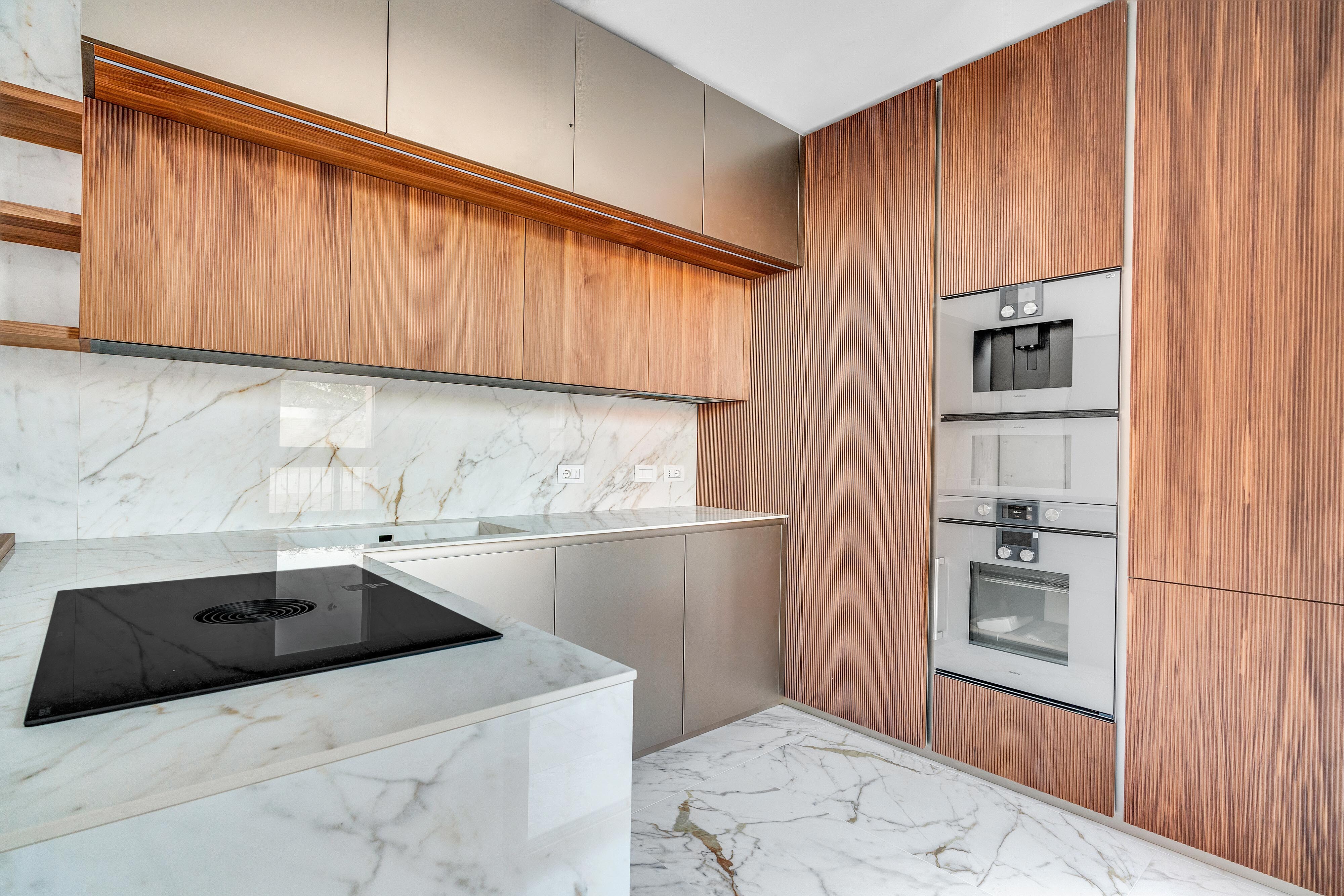 Favolosa nuova cucina della Minimal con elettrodomestici Gaggenau, rubinetto Quooker Front eroga acqua bollente a 100°C, fredda e frizzante, lavandino con dissipatore e meravigliosa cantinetta vini.