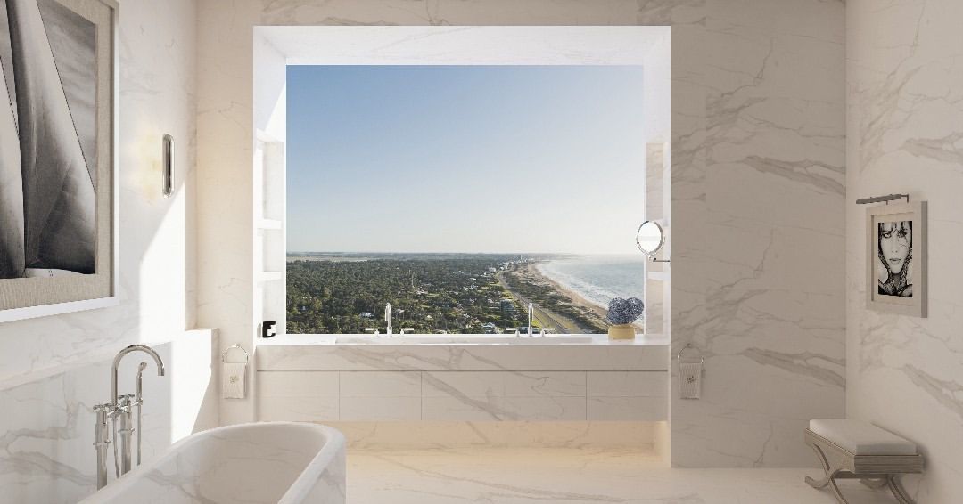 Located along Punta del Este’s Atlantic shores, the resort will offer a casino, spa, beach club, luxury boutiques, fine dining, pools, and more. Interiors by Hassen Balut capture breathtaking ocean views, blending timeless elegance with modern sophistication.