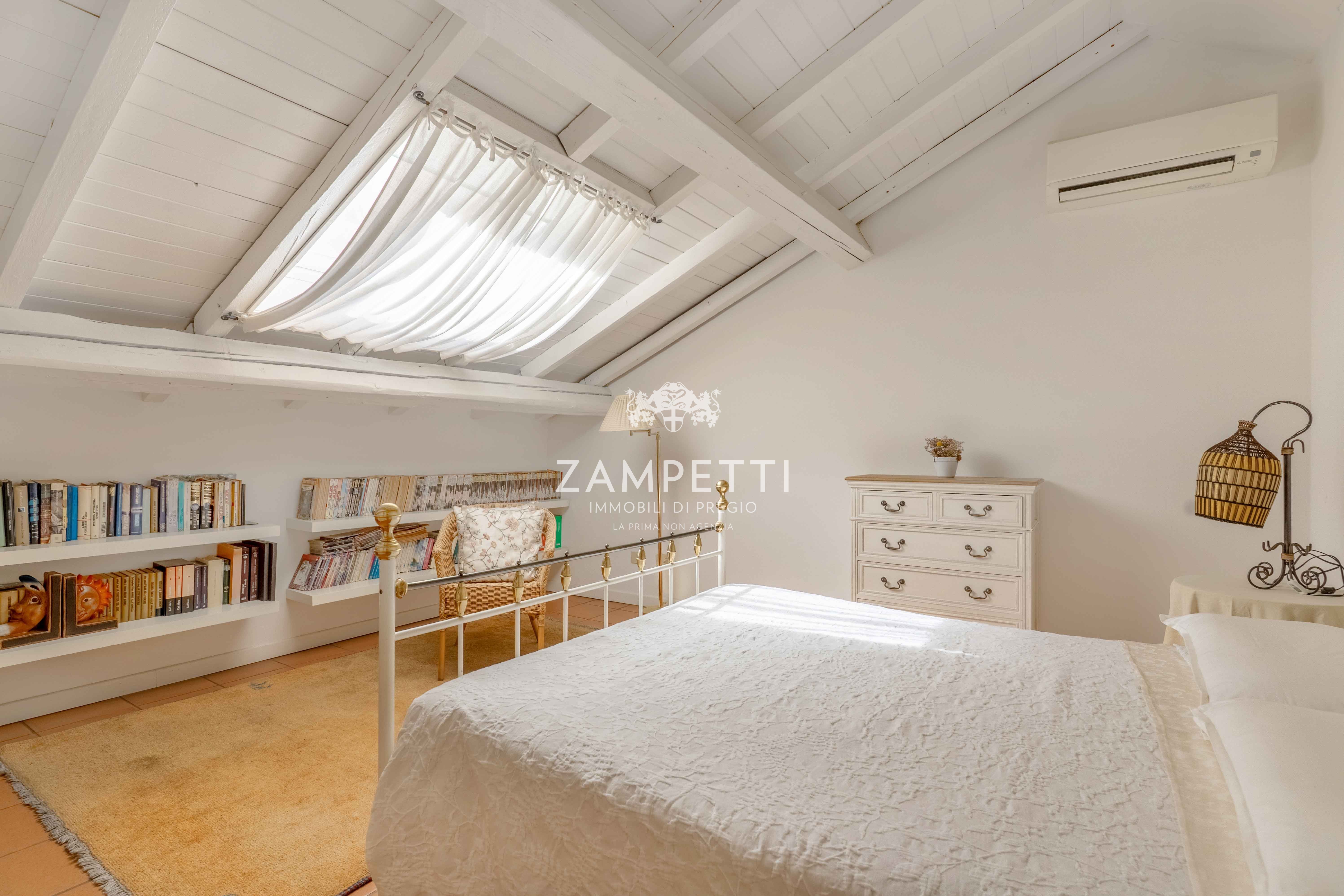 Salendo le scale, si raggiunge una master bedroom impreziosita da un'ampia sala da bagno e una cabina armadio; con una scala a chiocciola è possibile raggiungere un piccolo terrazzino.