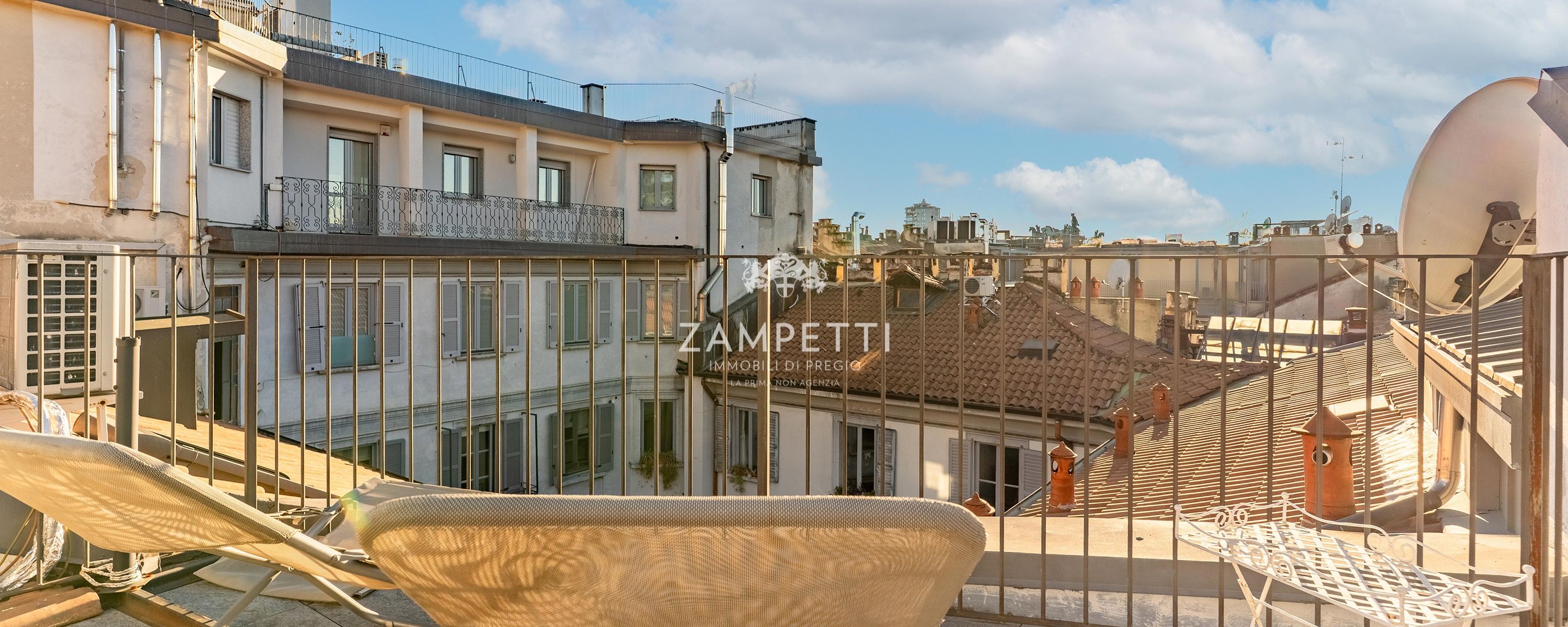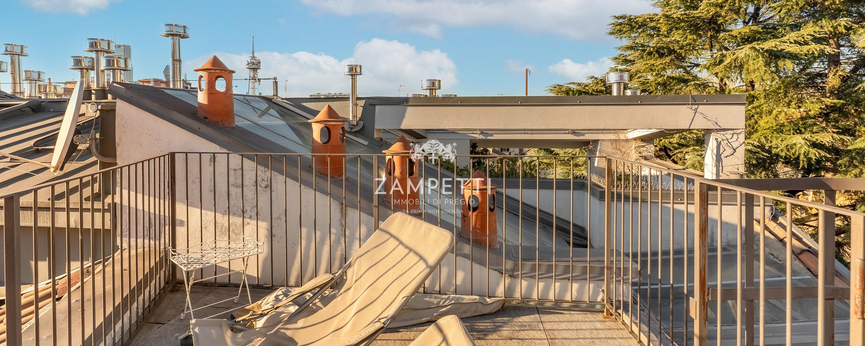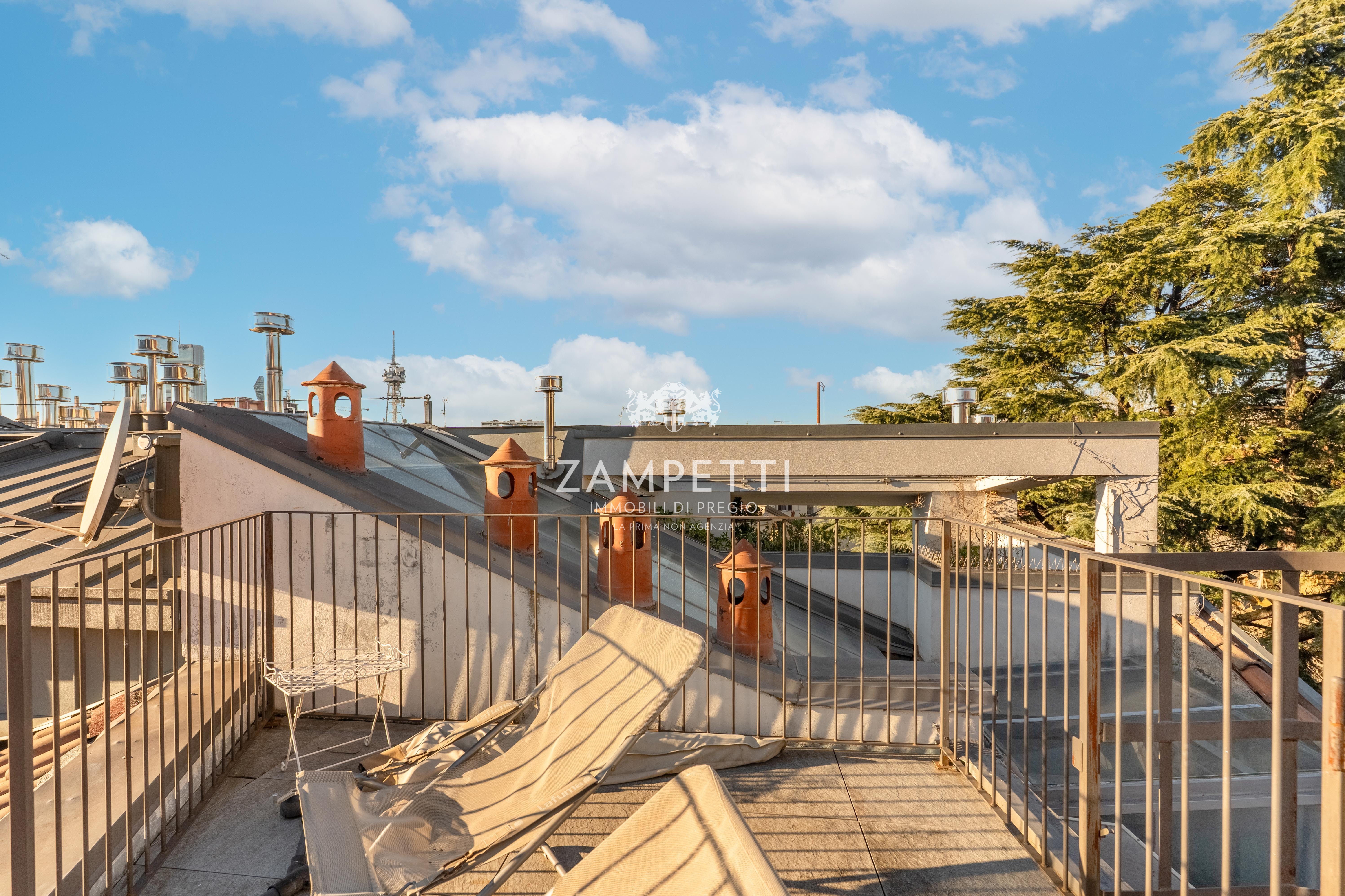 Completa la proprietà l'uso esclusivo di un meraviglioso terrazzino al piano superiore, affacciato sui tetti dell’Arco della Pace: un vero gioiello raro da trovare in questa zona.