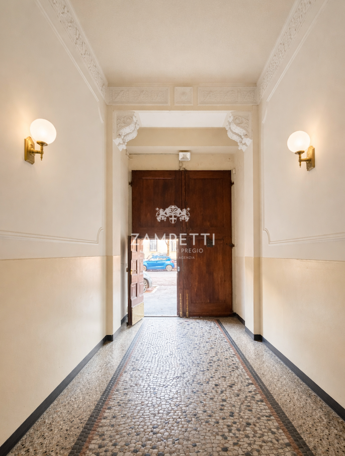 la Zampetti Immobili di Pregio propone in vendita in esclusiva un prestigioso appartamento di circa 110 mq, situato al primo piano di un palazzo d’epoca di fascino e carattere, con ascensore e servizio di portineria tutto il giorno.